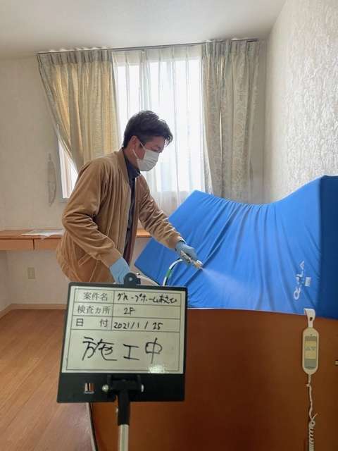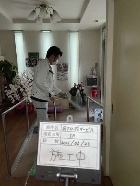 今回はこの施設の全フロア全て事務所から居室に至るまで隅から隅まで消毒と抗菌させていただきました!!